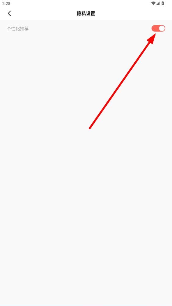 4、進(jìn)入隱私設(shè)置頁面后,找到個(gè)性化推薦選項(xiàng),點(diǎn)擊其右側(cè)的開關(guān)按鈕將其關(guān)閉。