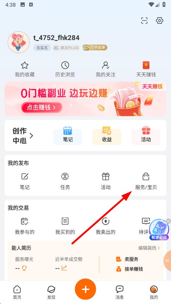 2、在個(gè)人界面中,找到并點(diǎn)擊服務(wù)寶貝選項(xiàng),進(jìn)入服務(wù)管理頁(yè)面。