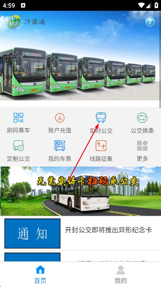 1、打開汴梁通軟件,在主界面找到“實時公交”選項,點擊該選項,進入實時公交查詢頁面。