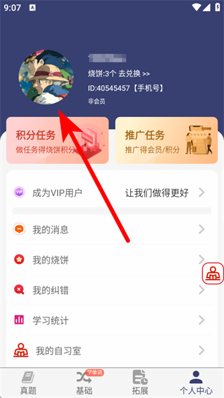 1、打開燒餅日語APP,點(diǎn)擊個(gè)人中心,進(jìn)入個(gè)人頁面。