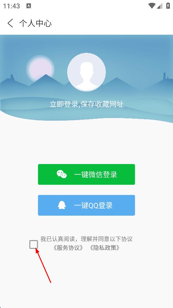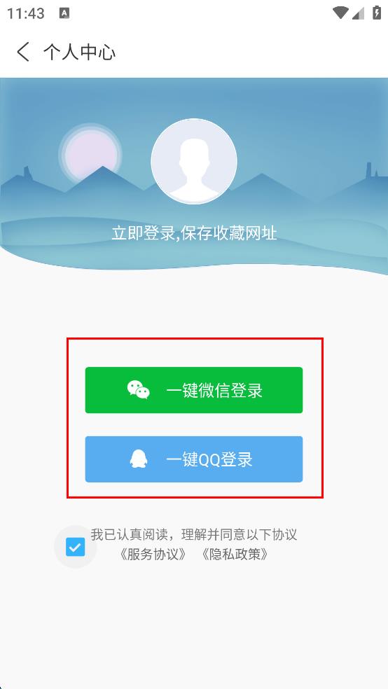 3、在個人中心頁面,勾選我已認真閱讀,理解并同意以下協議服務協議,隱私政策。