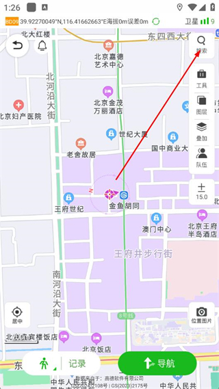 2、在地圖頁面,點(diǎn)擊右上角搜索按鈕。