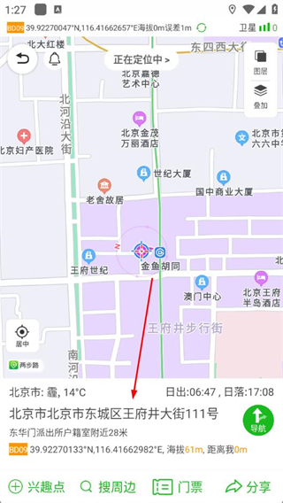 6、經(jīng)緯度定位成功后,在地圖頁面查看定位點(diǎn)信息。