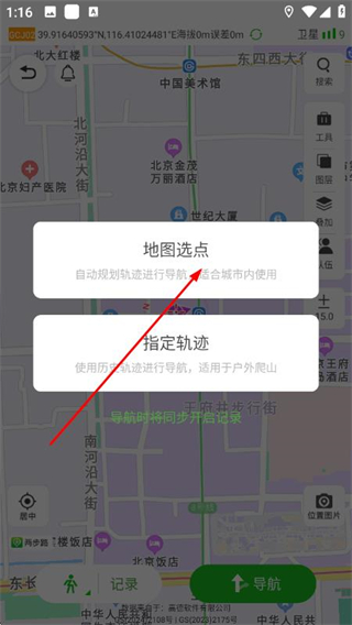 3、選擇地圖選點(diǎn)模式,自動(dòng)規(guī)劃軌跡適合城市內(nèi)使用。