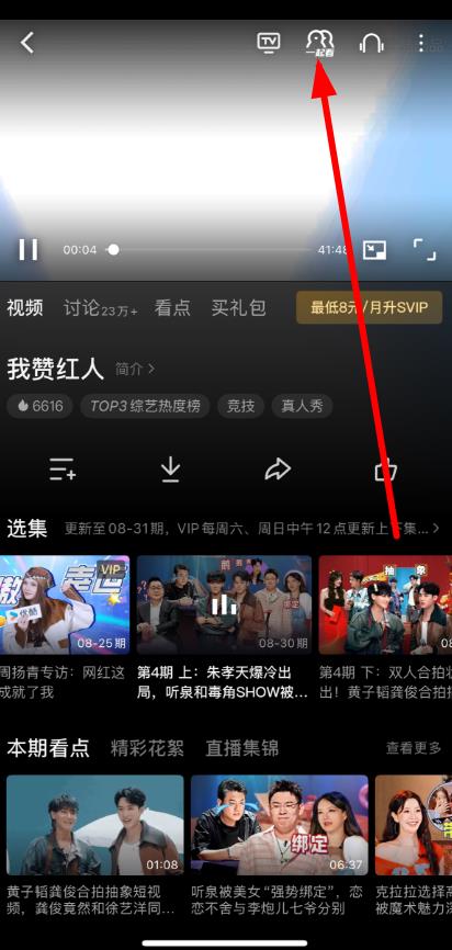 2、在節(jié)目播放頁面,點擊右上方一起看圖標(biāo)。