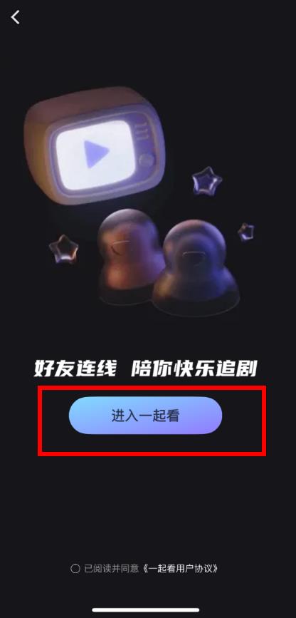 3、在彈出的頁面中,點擊進(jìn)入一起看,之后按照提示操作即可邀請好友一起觀看視頻。