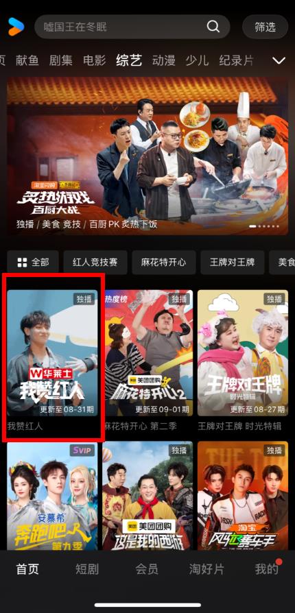 1、打開優(yōu)酷APP,在首頁找到想觀看的節(jié)目,比如點擊進(jìn)入我贊紅人節(jié)目界面。