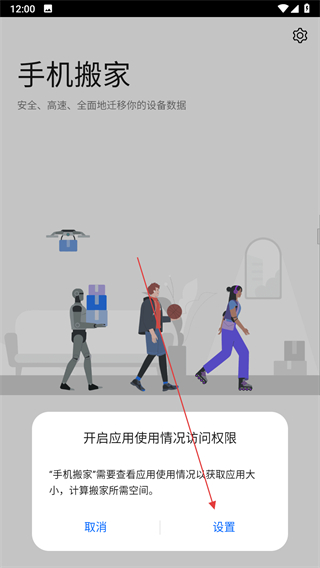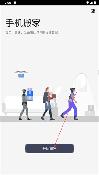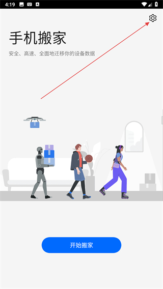 1、打開OPPO手機搬家APP,點擊設置圖標。