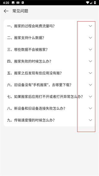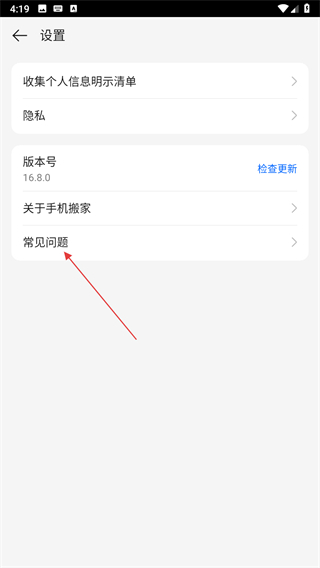 3、進入常見問題頁面之后,點擊后面的箭頭。