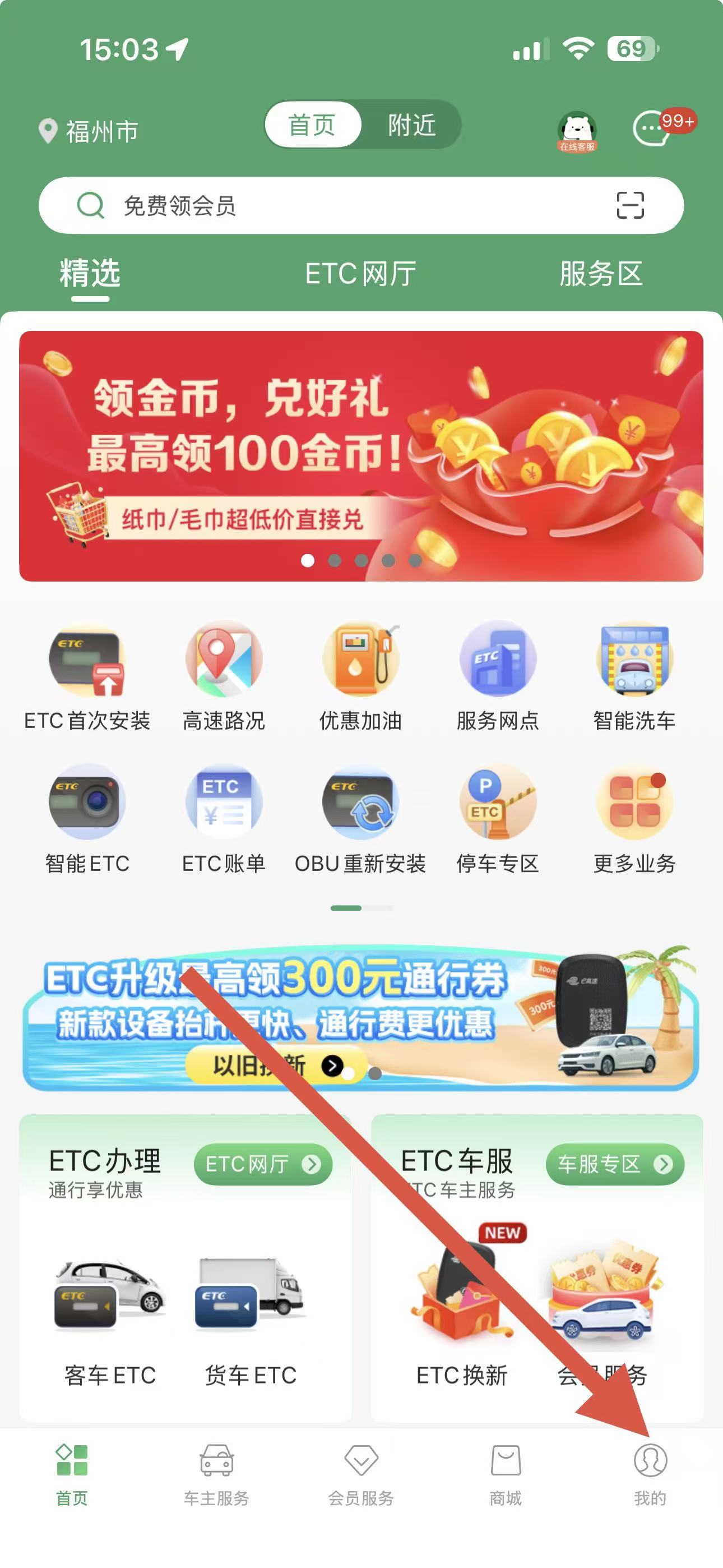 1、打開(kāi)e高速APP,在首頁(yè)點(diǎn)擊右下角我的進(jìn)入個(gè)人頁(yè)面。