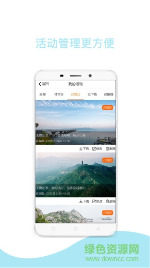 商家發(fā)布的活動,可以通過“我的活動”查看活動的審核狀態(tài),上線、下線及過期狀態(tài)。