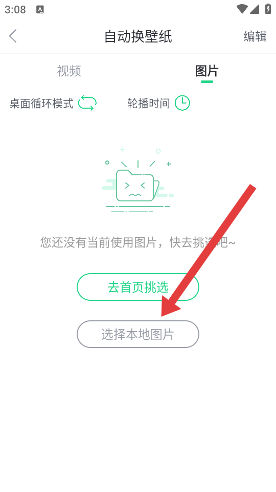 3、在自動換壁紙頁面,點擊選擇本地圖片的按鈕,進(jìn)入本地圖片選擇界面。