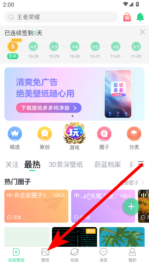 1、在壁紙多多首頁,點擊底部壁紙選項,進(jìn)入壁紙分類頁面。