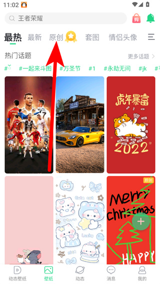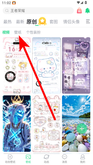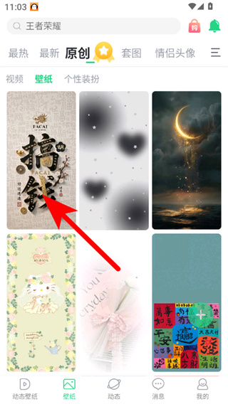 2、在原創(chuàng)壁紙分類頁面,點擊壁紙選項,進(jìn)入壁紙列表頁面。