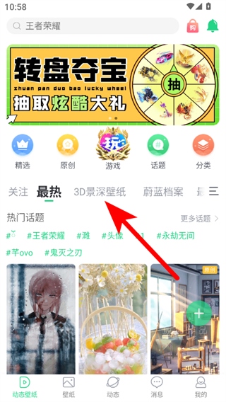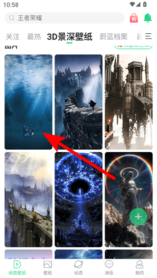1、在壁紙多多首頁,點擊3D景深壁紙選項,進(jìn)入壁紙分類頁面。