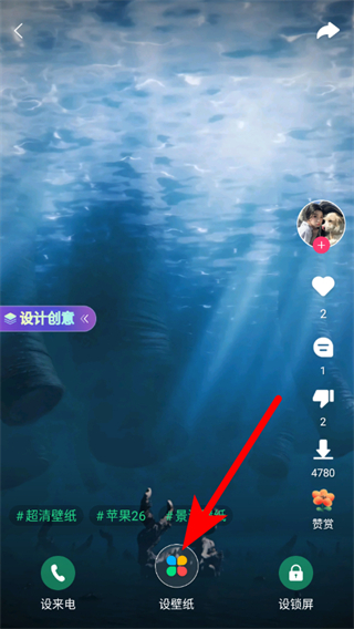 4、在壁紙詳情頁面,點擊設(shè)壁紙按鈕,即可完成壁紙設(shè)置操作。