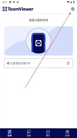 1、打開TeamViewer應(yīng)用,點(diǎn)擊頁面右上角的設(shè)置圖標(biāo),進(jìn)入設(shè)置頁面。