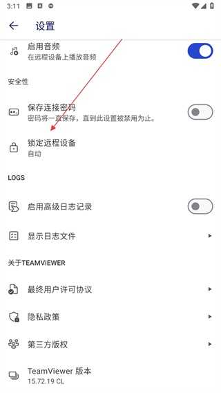 2、在設(shè)置頁面,找到鎖定遠(yuǎn)程設(shè)備選項(xiàng),點(diǎn)擊該選項(xiàng)彈出選擇窗口。