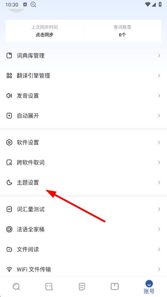 2、在賬號(hào)頁面中,找到并點(diǎn)擊主題設(shè)置選項(xiàng),進(jìn)入主題設(shè)置界面。