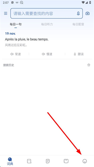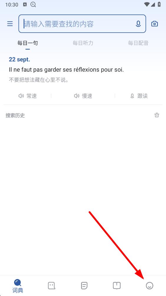 1、打開法語助手app,點(diǎn)擊底部導(dǎo)航欄最右側(cè)的賬號(hào)圖標(biāo),進(jìn)入賬號(hào)相關(guān)頁面。