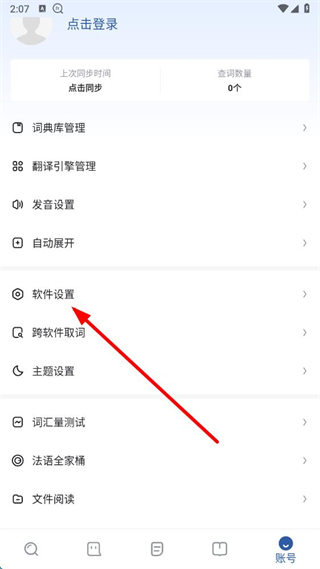 2、在賬號(hào)管理界面,點(diǎn)擊軟件設(shè)置選項(xiàng),進(jìn)入軟件設(shè)置界面。