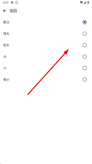 4、在字體大小選擇界面,可選擇特大、較大、大、小、極小等字體大小。