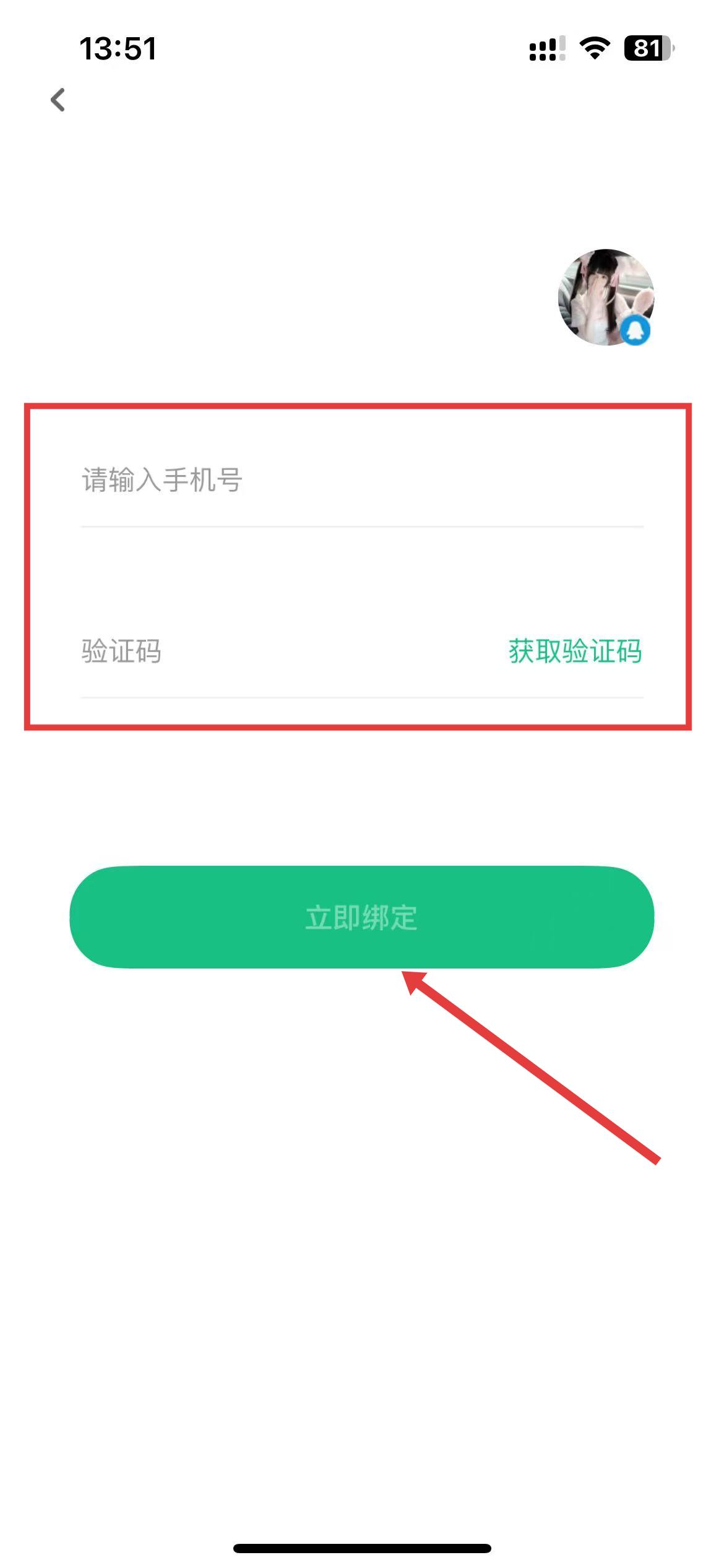 5、在彈出頁面輸入手機(jī)號,獲取驗證碼輸入驗證碼后,點擊立即綁定,即可完成手機(jī)號綁定。