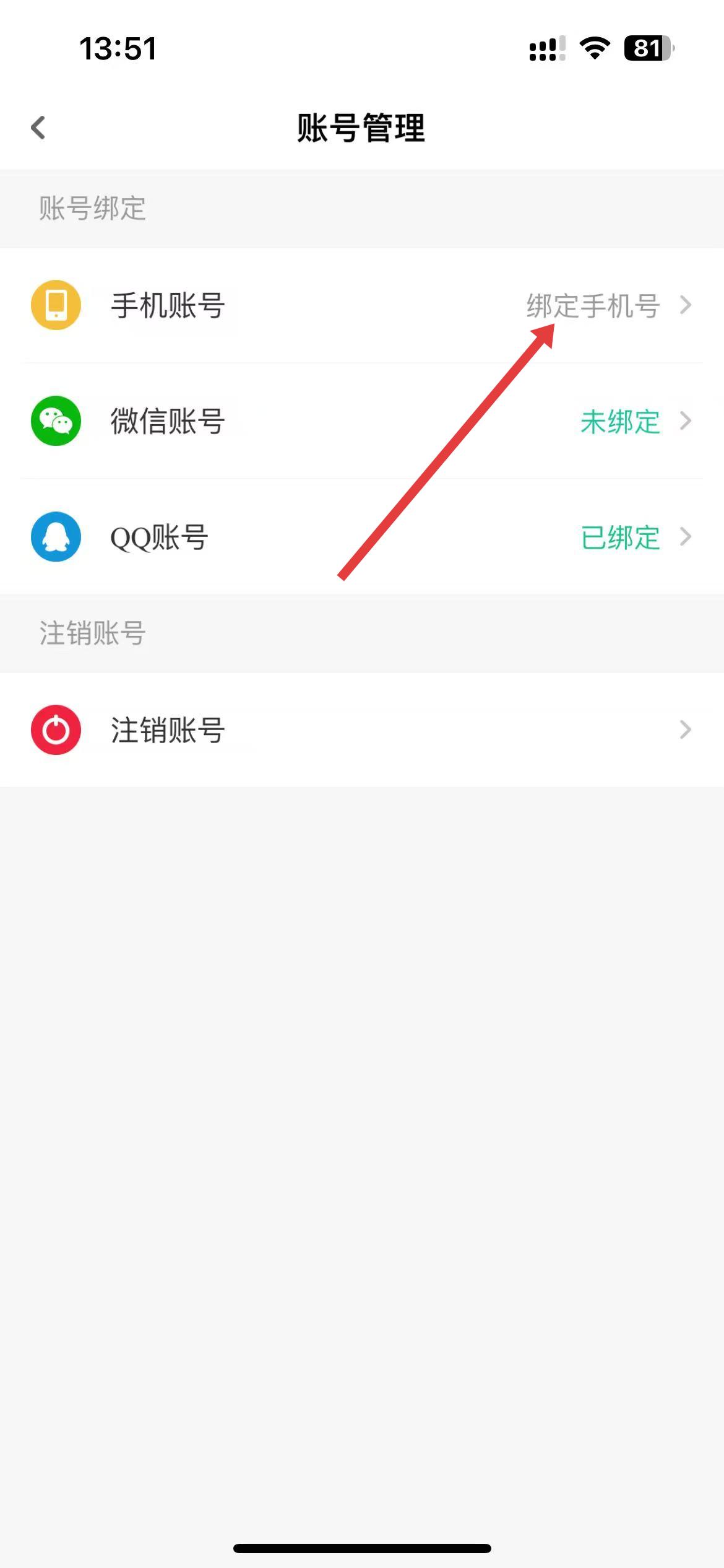4、在賬號管理頁面中,點擊手機(jī)賬號右側(cè)的綁定手機(jī)號。