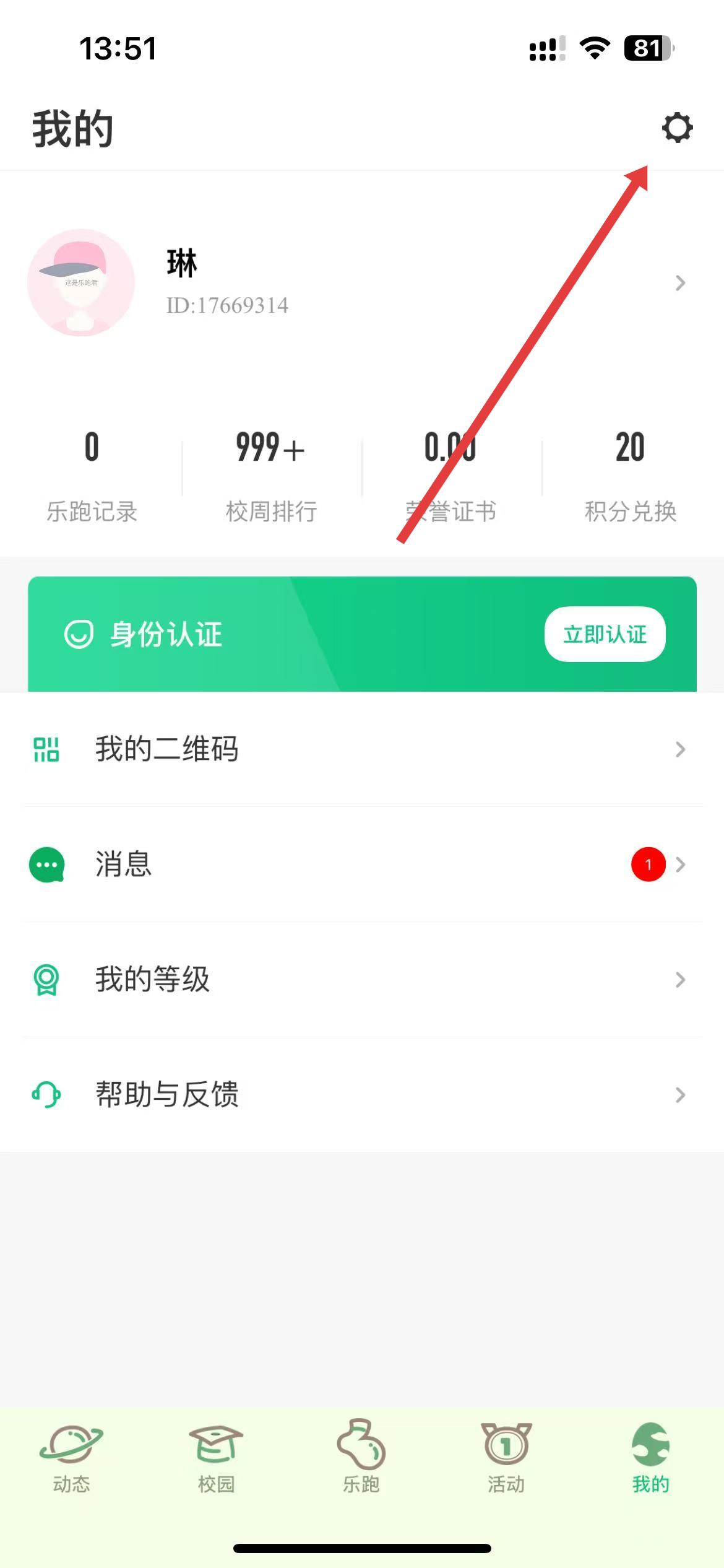 2.等待審核,審核通過后,app會收到系統(tǒng)認(rèn)證通過的消息,同時“我的”界面中頭像狀態(tài)也會變更為“已認(rèn)證”,跑步界面也會顯示學(xué)校信息。