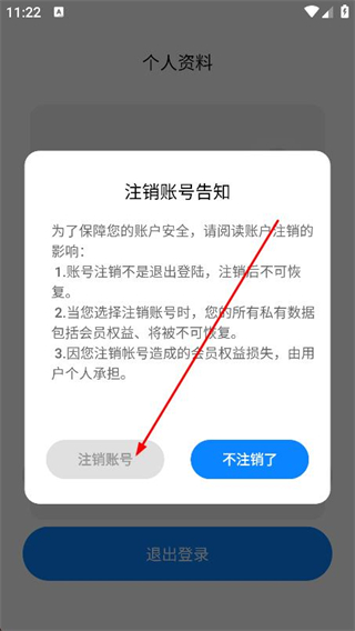 4、在彈出的提示框中,點擊注銷賬號即可完成賬號注銷。