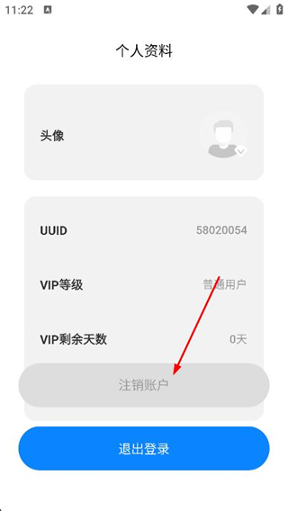 3、在個人資料頁面,找到并點擊下方的注銷賬戶按鈕。