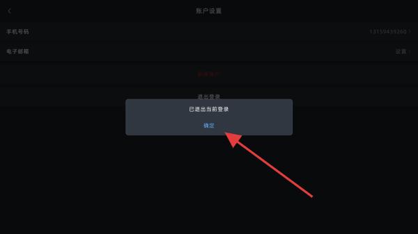 4、點擊后,會彈出提示已退出當前登錄,再次點擊確定即可。