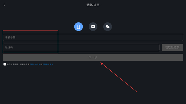 3、輸入手機號碼、驗證碼后,點擊下一步即可登錄成功。