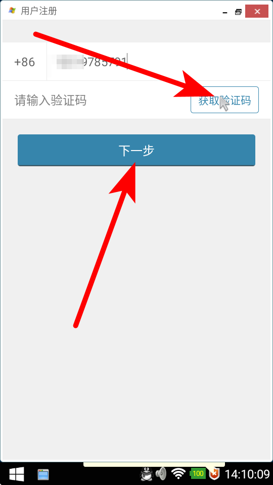 4、點(diǎn)擊獲取驗(yàn)證碼,輸入收到的驗(yàn)證碼后,點(diǎn)擊下一步,即可按提示完成賬號(hào)注冊(cè)。