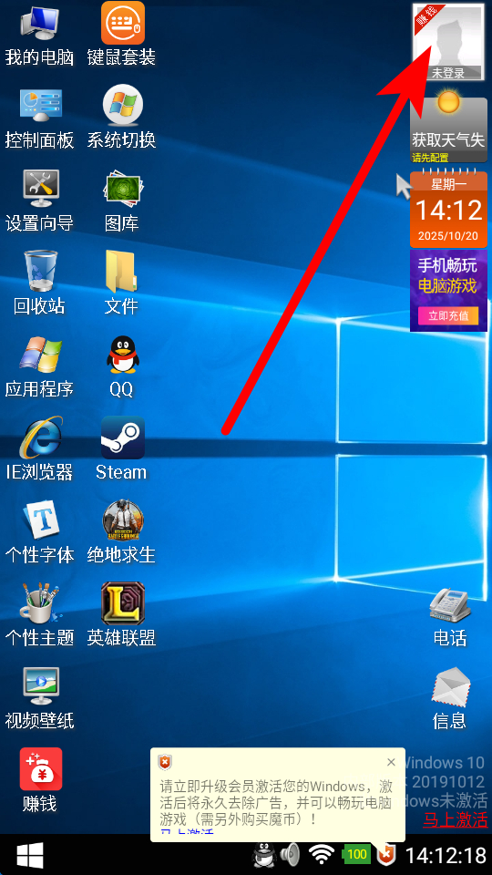 1、在魔伴桌面主界面,點(diǎn)擊右上角未登錄圖標(biāo)。