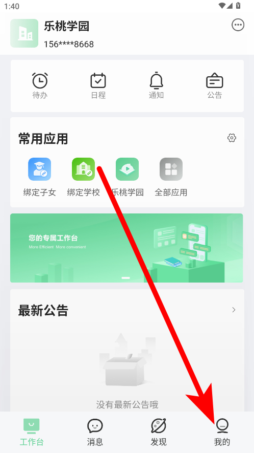 1、打開樂桃學(xué)園APP,點(diǎn)擊底部我的選項(xiàng)進(jìn)入個(gè)人界面。