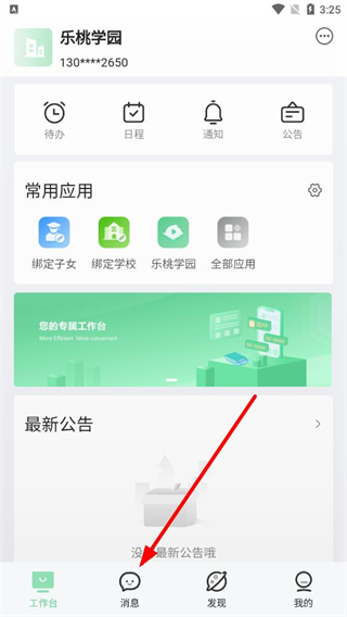 1、在首頁底部,點(diǎn)擊消息選項(xiàng),進(jìn)入消息相關(guān)操作頁面。
