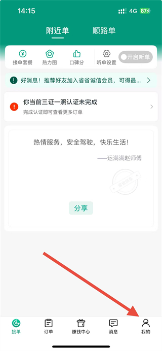 1、在省省司機(jī)app界面點(diǎn)擊我的選項(xiàng),進(jìn)入個(gè)人頁面。
