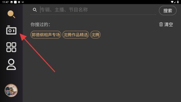 1、打開聽伴app,在首頁的左側(cè)點(diǎn)擊電臺(tái)的圖標(biāo)。