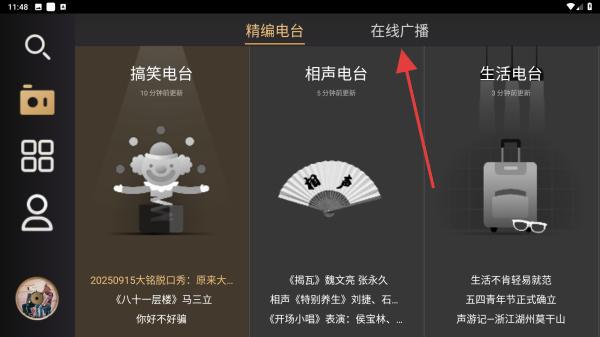 2、進(jìn)入電臺(tái)的頁面內(nèi),點(diǎn)擊在線廣播進(jìn)行切換。
