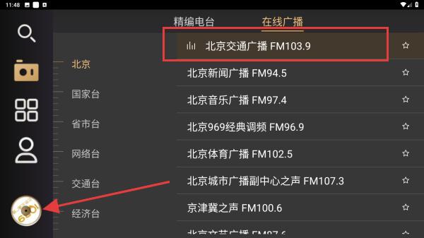 3、在在線廣播的頁面內(nèi),選擇你要聽的廣播內(nèi)容后,再點(diǎn)擊左下角播放的圖標(biāo)。