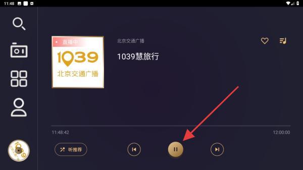 4、進(jìn)入播放的頁面內(nèi),點(diǎn)擊播放的按鈕即可開始聽廣播內(nèi)容。