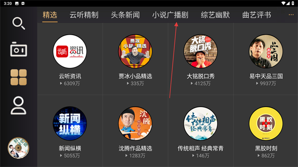 2、進(jìn)入該頁面內(nèi),點(diǎn)擊上方小說廣播劇的標(biāo)簽。