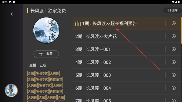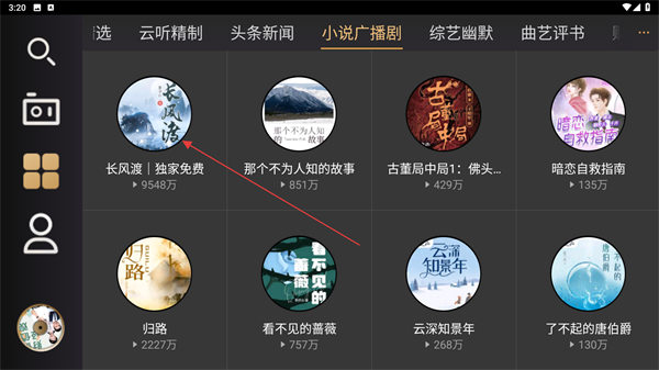 3、進(jìn)入小說廣播劇的頁面內(nèi),點(diǎn)擊要播放的內(nèi)容。