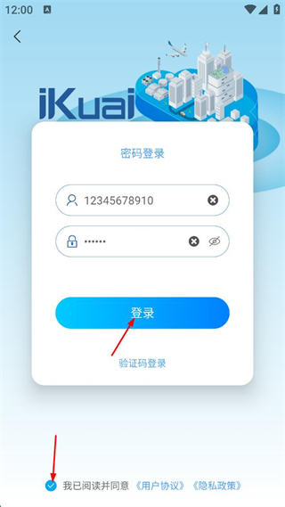 4、勾同意用戶協(xié)議和隱私政策,點(diǎn)擊登錄按鈕,完成密碼登錄操作。
