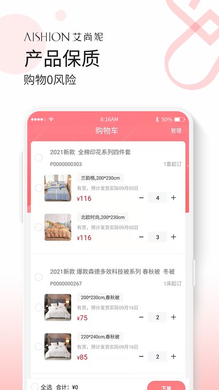 艾尚妮家紡是一款線上購(gòu)物的軟件,里面有非常多的家訪種類(lèi)提供,讓用戶(hù)能夠盡情的挑選,線上查看,還能帶您去線下門(mén)店進(jìn)行體驗(yàn),非常的方便,家紡的質(zhì)量都是有保障的,平臺(tái)還會(huì)為您推薦人氣商品等您前來(lái)查看。