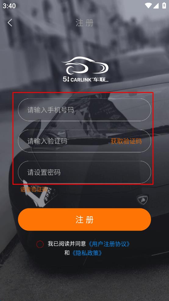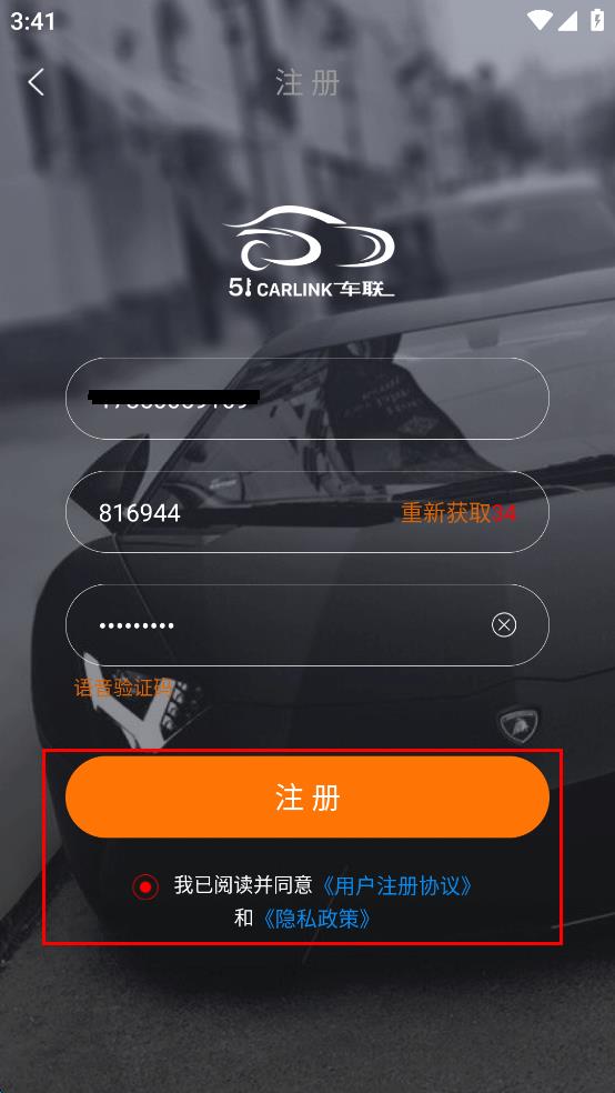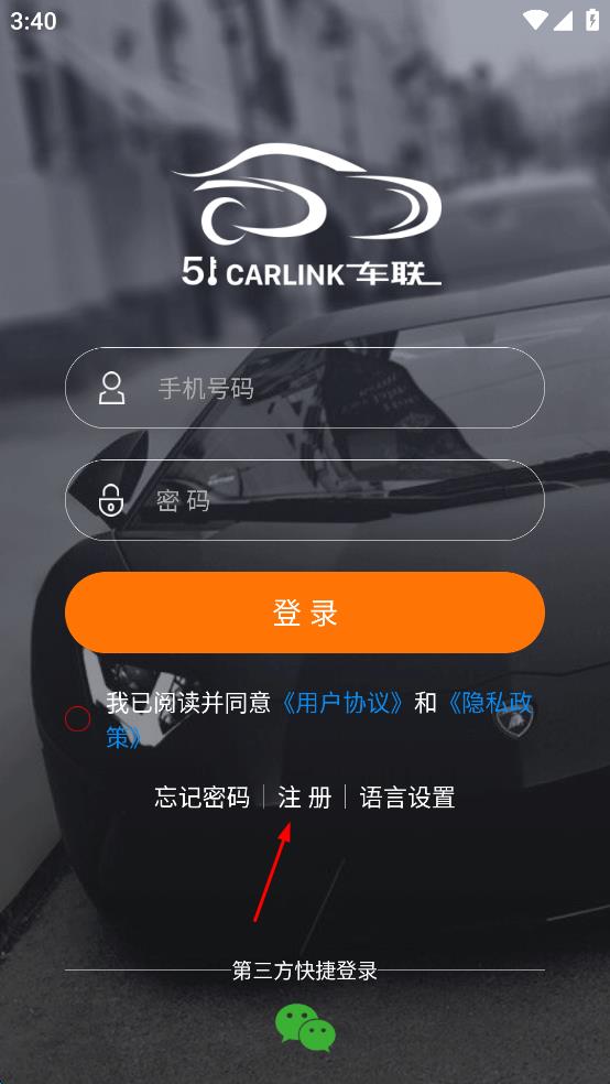 1、打開51車聯(lián)APP,在登錄頁面點擊注冊。