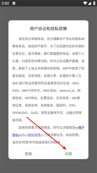 1、打開51車聯(lián)APP,在彈窗中點擊同意選項。
