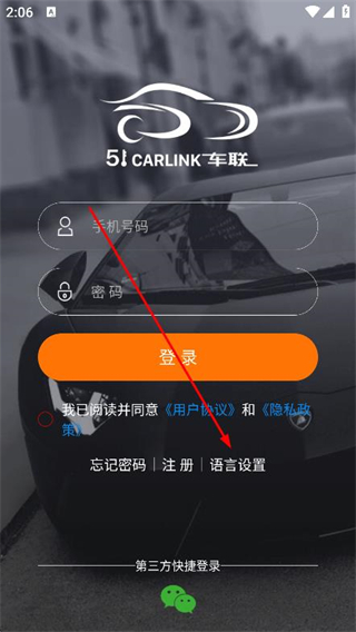 2、在登錄頁面,找到并點擊下方的語言設置。