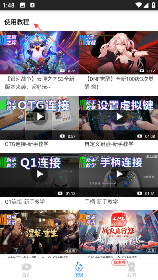2、若初次使用或?qū)δM器操作不熟悉,點(diǎn)擊底部導(dǎo)航欄的發(fā)現(xiàn)選項(xiàng),進(jìn)入使用教程頁(yè)面,這里有各類(lèi)教學(xué)視頻,根據(jù)自身需求點(diǎn)擊相應(yīng)視頻教程觀看學(xué)習(xí)。